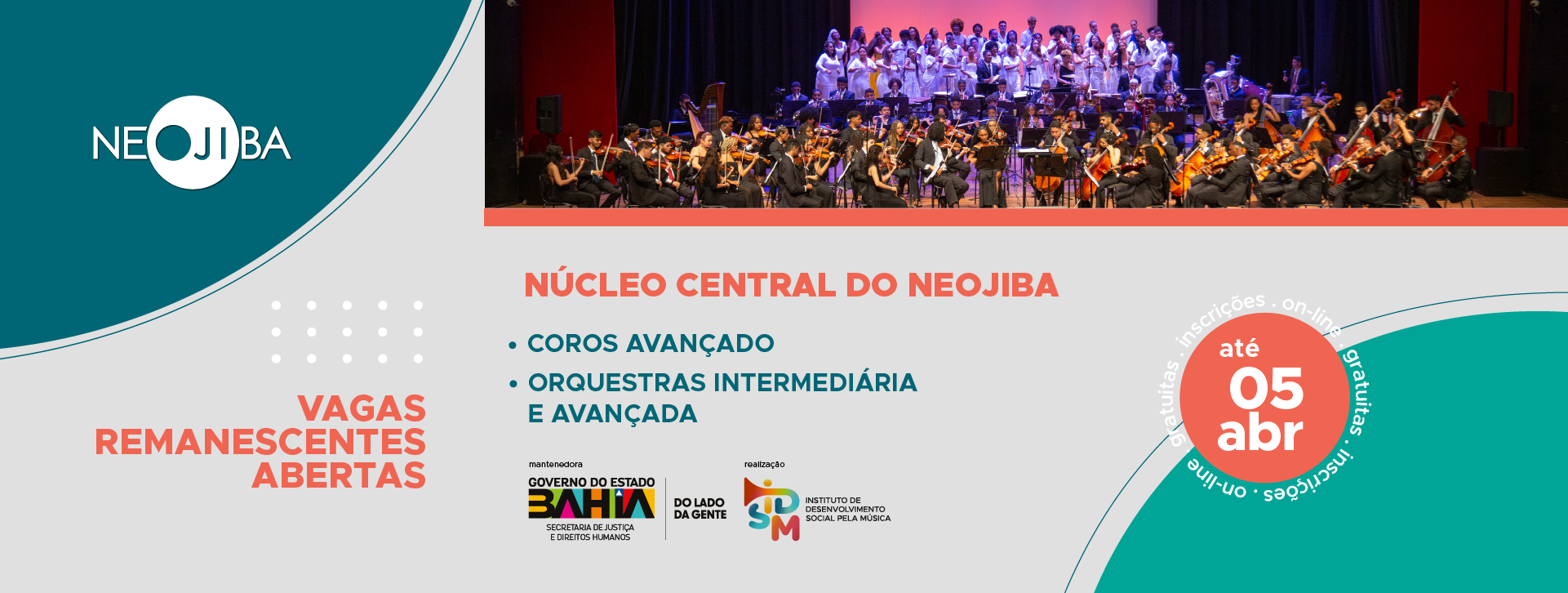 The NEOJIBA program is a Bahia State Government public policy, maintained by the Secretary of Justice and Human Rights of the State and managed by the Institute for Social Development through Music (IDSM, in Portuguese).