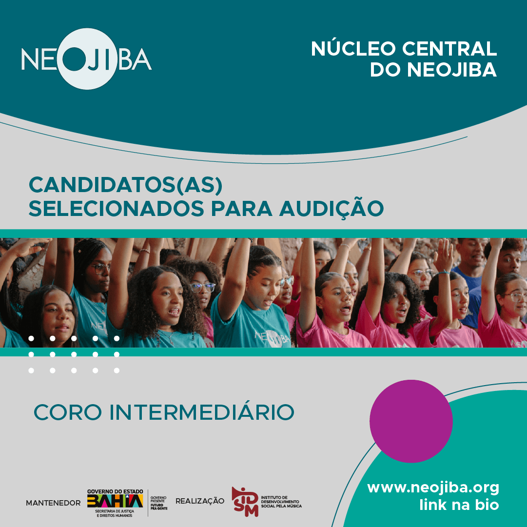 CONFIRA A LISTA DE SELECIONADOS PARA AS AUDIÇÕES DO CORO INTERMEDIÁRIO