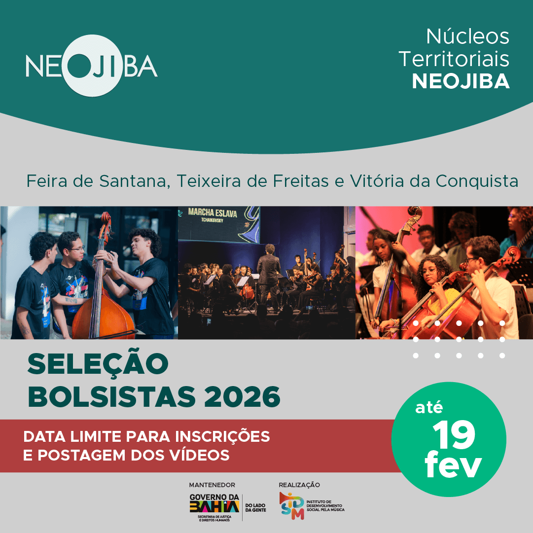 Já pensou em ser um bolsista multiplicador nas orquestras e coros do NEOJIBA? Agora é a sua chance! Estão abertas 40 vagas para bolsistas nos Núcleos Territoriais do NEOJIBA (NTN) em Feira de Santana, Vitória da Conquista e Teixeira de Freitas.