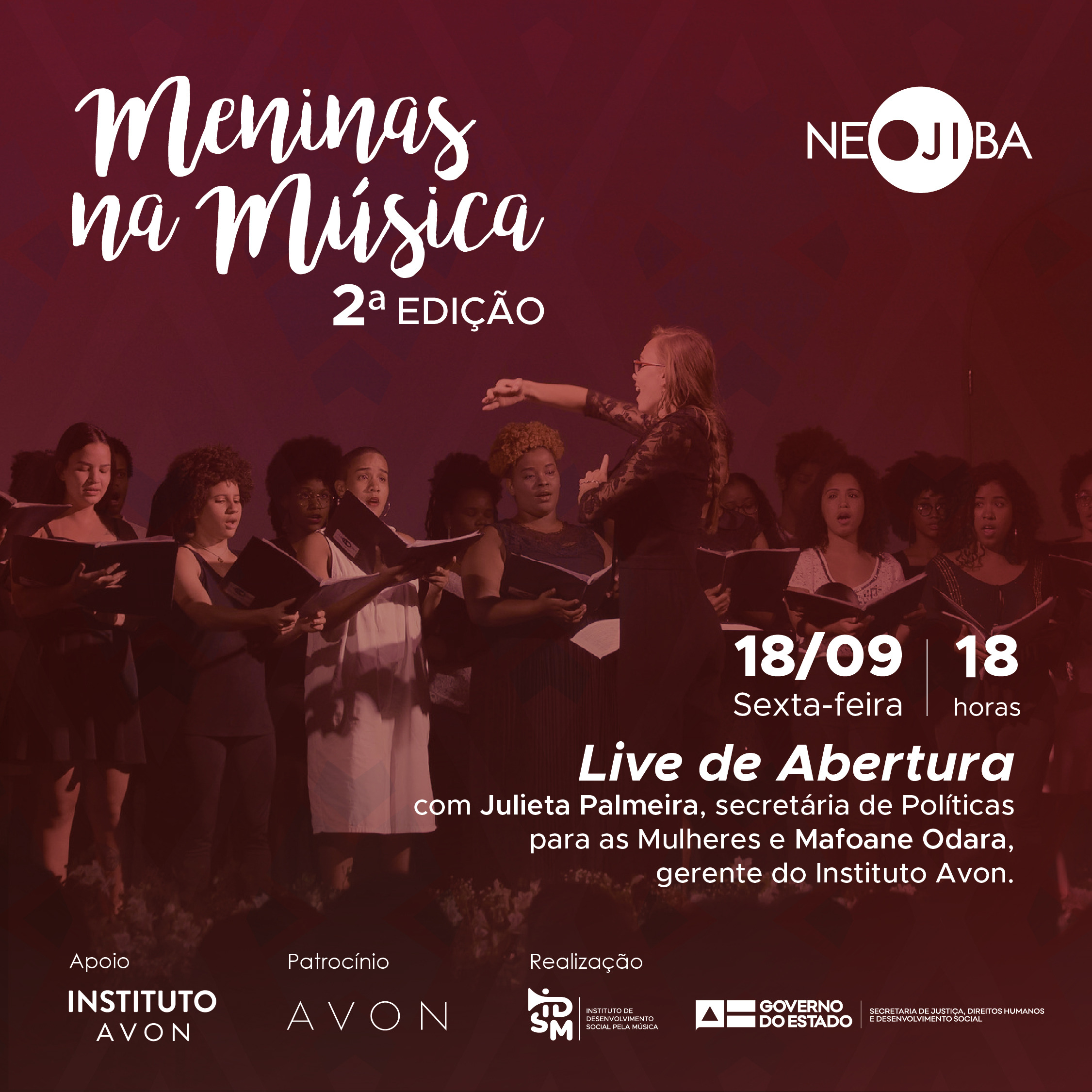 A live será transmitida às 18h pelo Facebook do NEOJIBA (facebook.com/programaneojiba) e terá como convidadas Julieta Palmeira, secretária de Políticas para as Mulheres do Governo da Bahia e Mafoane Odara, gerente do Instituto Avon.