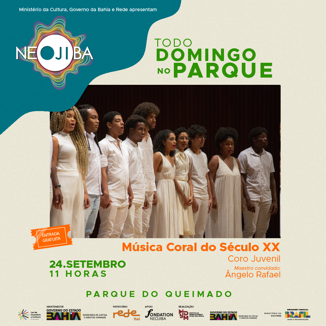 Os integrantes do Coro Juvenil do NEOJIBA sob a regência do maestro Ângelo Rafael irão apresentar um repertório dedicado à música coral do século 20.