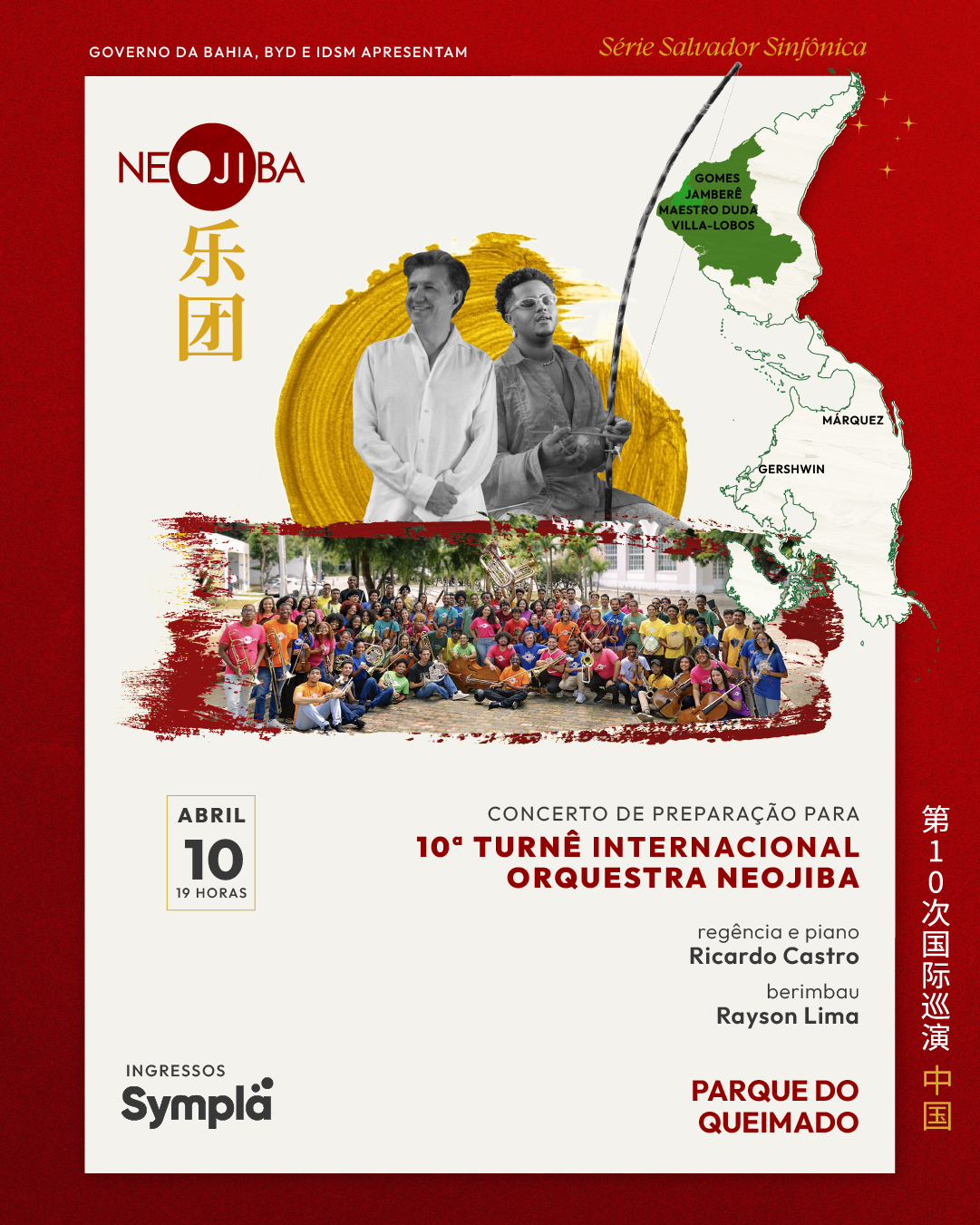 Sob regência de Ricardo Castro, diretor-geral do NEOJIBA, que também atua como solista ao piano, o programa reúne obras dedicadas às Américas e traz como destaque “Kamarámusik”, de Jamberê, com solo de berimbau do percussionista baiano Raysson Lima.