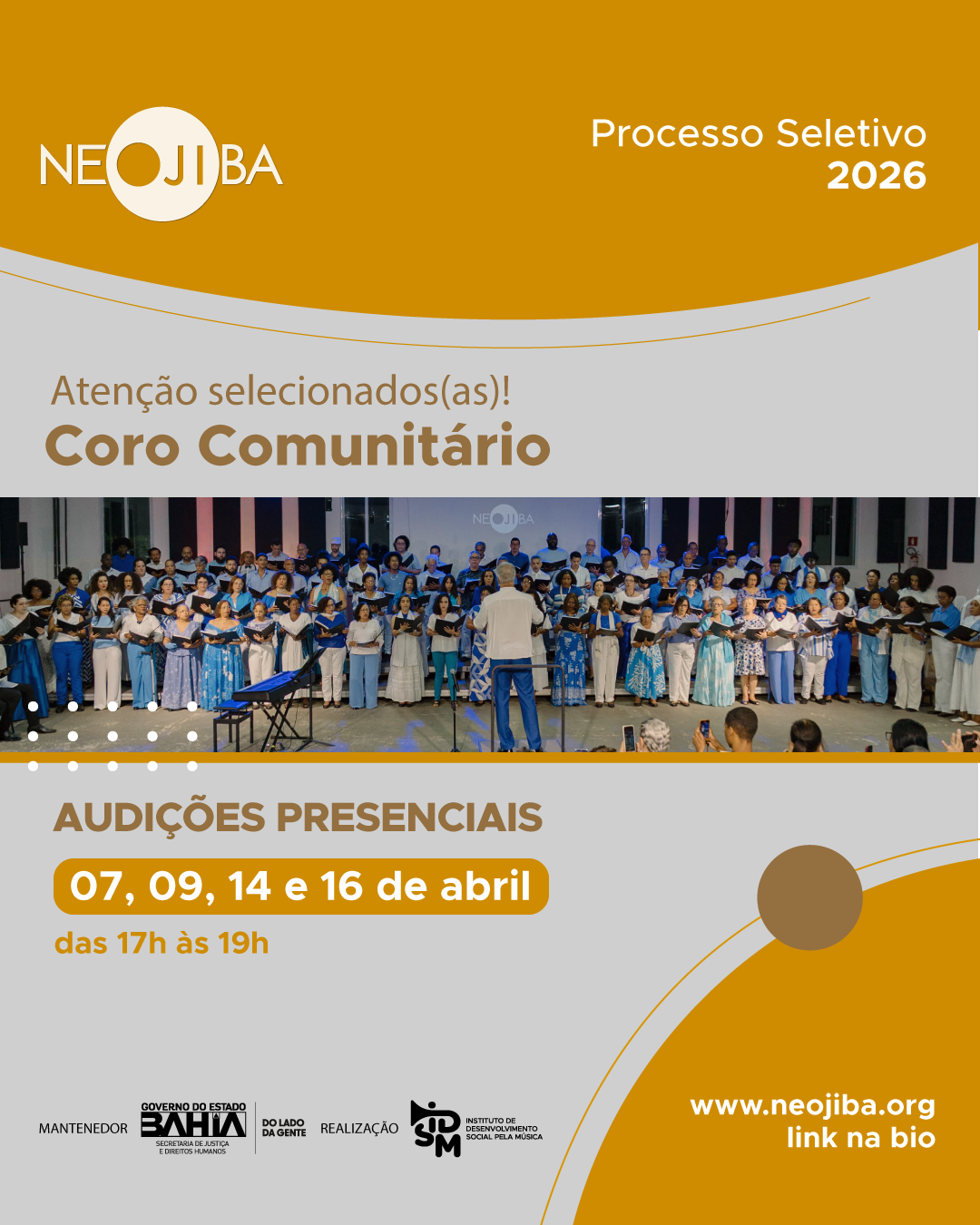 Confira a lista de selecionados e selecionadas para as audições presenciais do Coro Comunitário 2026.